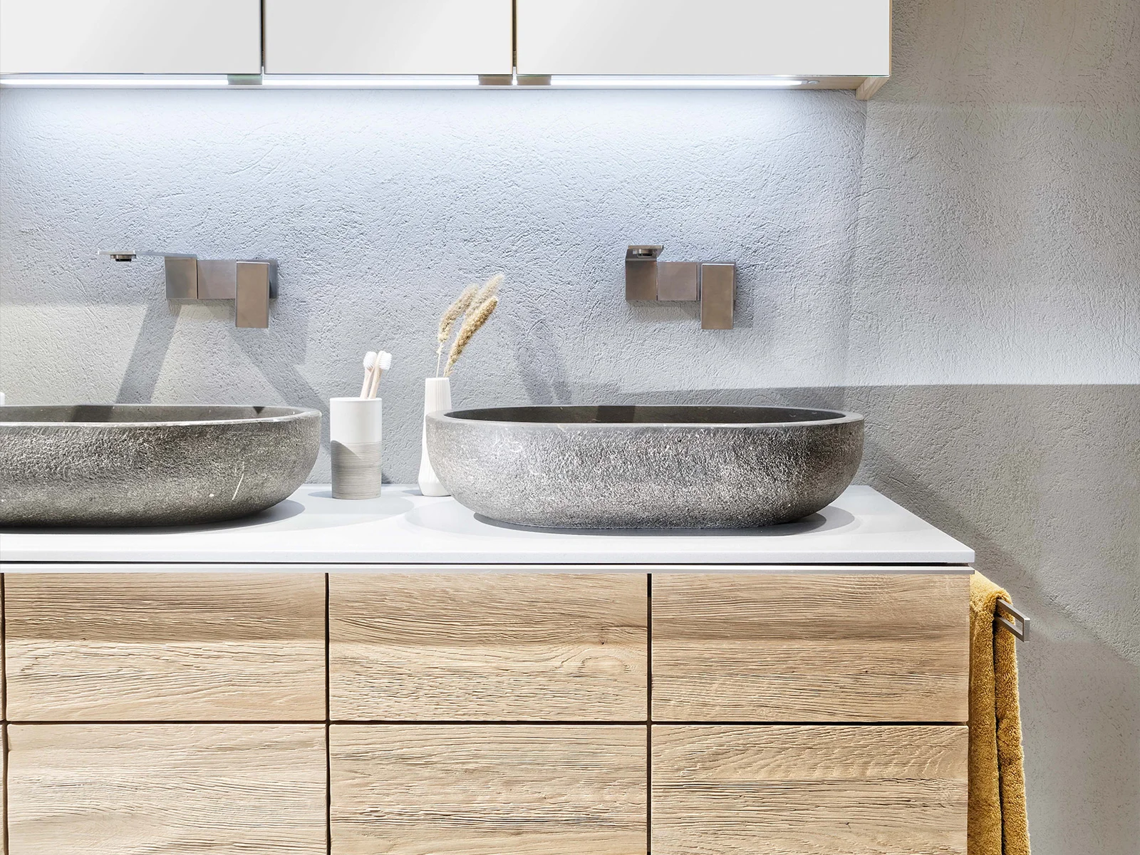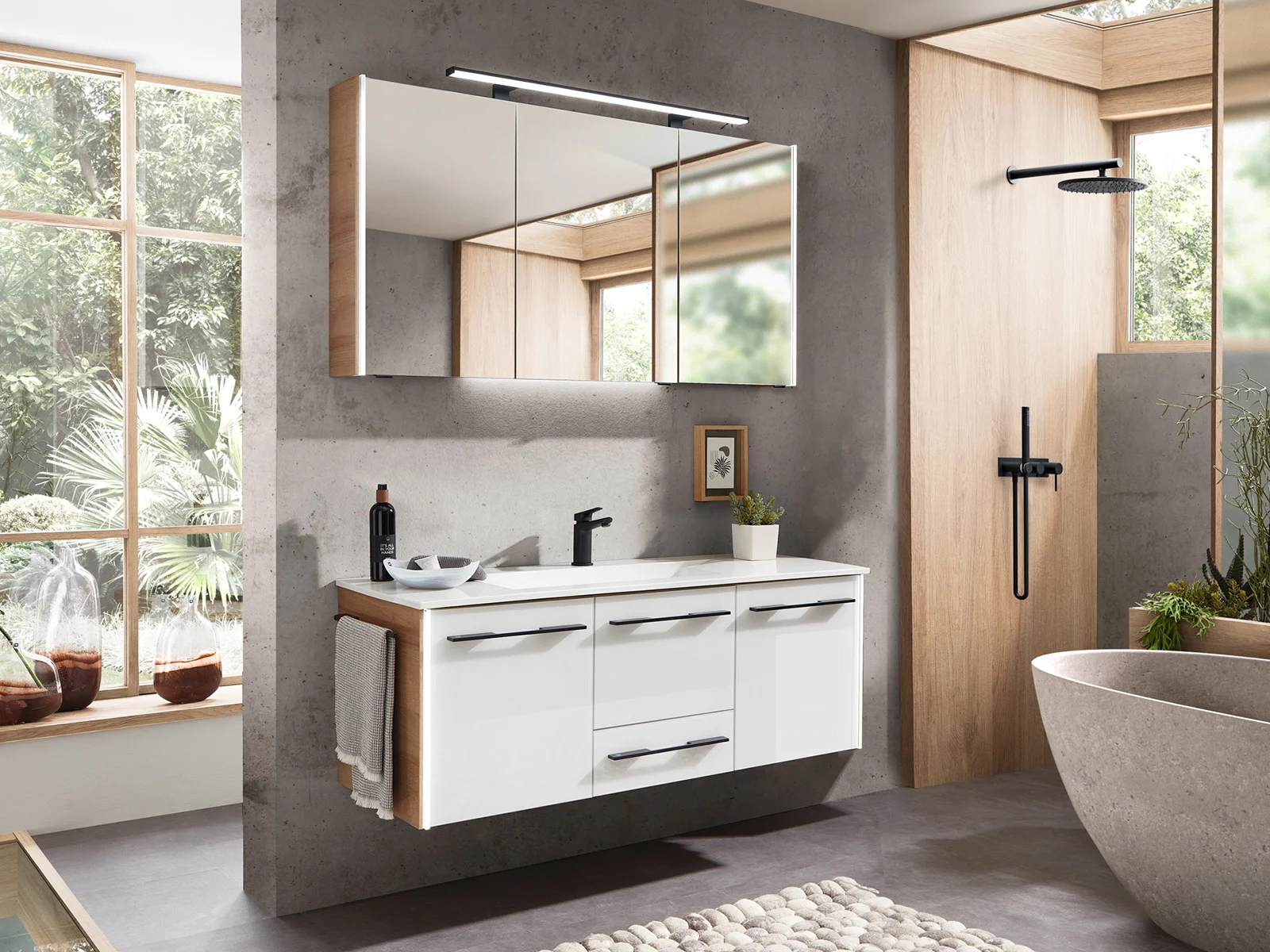 Ohne Zweifel gebührt auch dem Bad eine wohnliche Gestaltung und Einrichtung. Gestalten Sie sich einen eigenen Spa-Bereich als heimische Wohlfühloase, mit Badkombinationen, Badschränken, Waschtischen, Bad-Unterschränken, Regalen oder Spiegelschränken. Unser Sortiment in Rödental und Ilmenau bietet exzellente, qualitative Badmöbel für jedes Zuhause, mit bis zu 5 Jahre Garantie. Sie überzeugen durch hohe Funktionalität und geschmackvolles Design – perfekt für individuelle Raumlösungen. Was suchen Sie? Ein Raumwunder-Bad – also viel Badkomfort auf kleinem Raum? Oder ein barrierefreies Bad? Oder vielleicht ein schönes Gästebad? In unserer Badausstellung finden Sie die unterschiedlichsten Einrichtungsbeispiele. Fragen Sie unsere Badexperten: Wir finden auch auf knifflige Badfragen clevere Lösungen und arbeiten perfekt Ihrem Installateur zu.