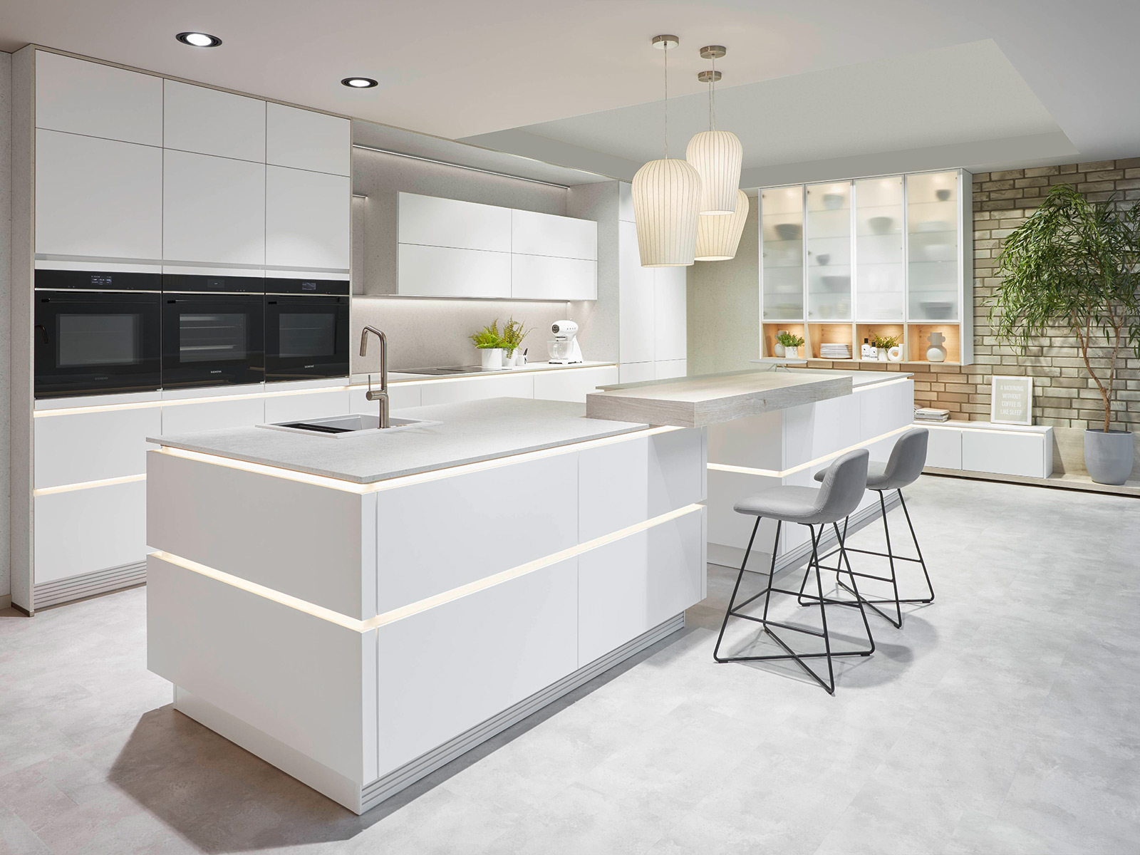 In der großen Ausstellung der Küchen Arena können Sie ein Gefühl entwickeln, welche Front am besten zu Ihnen passt. Unsere Küchenprofis führen Sie mit Fingerspitzengefühl und viel Erfahrung durch die Formen und Farben der Küchenwelt, damit Sie auch noch nach vielen Jahren von Herzen sagen können: „Was für eine schöne Küche ist meine Küche!“