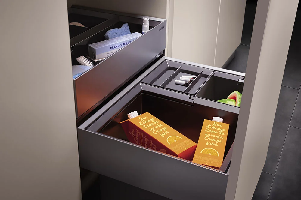 Abfallsammler sind überlebenswichtig in der Küche. Je besser sie stehen und organisiert sind, desto angenehmer ist der ganze Ablauf in der Küche. Durchdachte Abfallsysteme gewährleisten müheloses Öffnen, umweltgerechte Mülltrennung, leichte Reinigung und natürlich eine optimale Raumausnutzung.