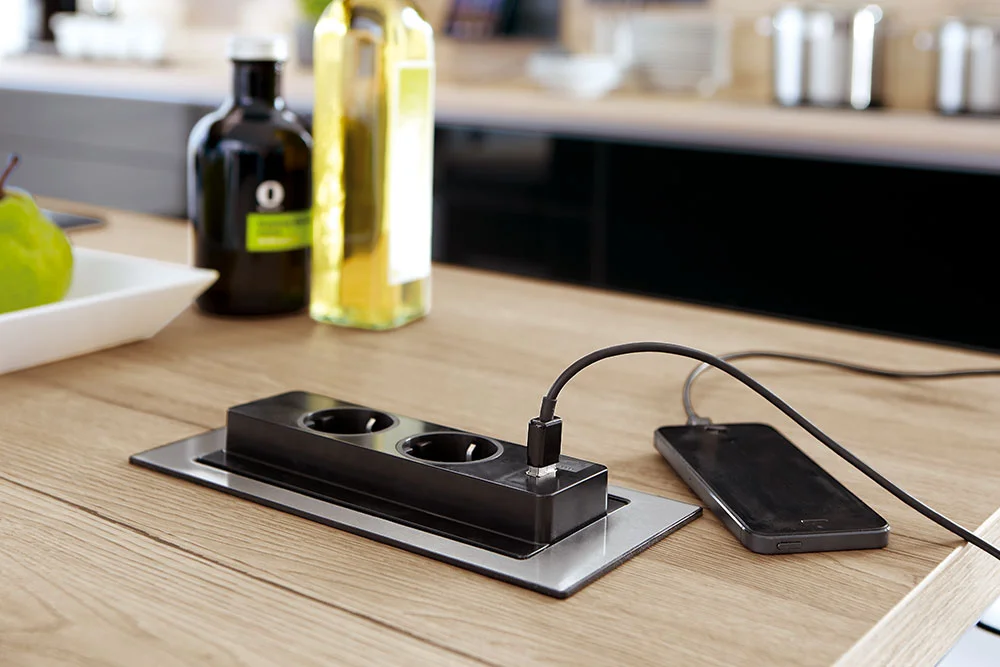 Die passende Energie an der richtigen Stelle ist bei der Küchenarbeit Gold wert. Wenn außerdem noch Einzel- oder Doppel-USB-Charger (Ladestation) für mobile Endgeräte wie Smartphone oder Tablet zur Verfügung stehen, um so besser. Die Auswahl an versenkbaren, wandmontierten oder aufgesetzten Schalt- und Steckdosen-Varianten lässt einen großen Spielraum für die optimale Steckdosenausstattung.