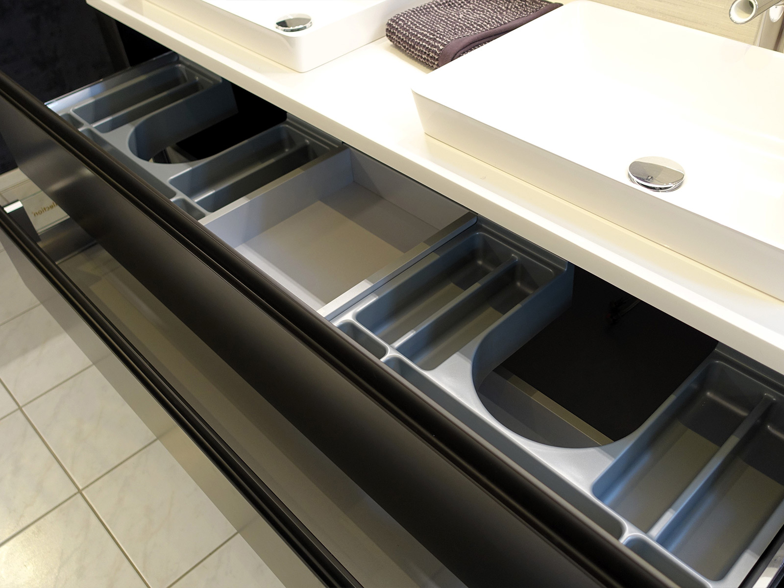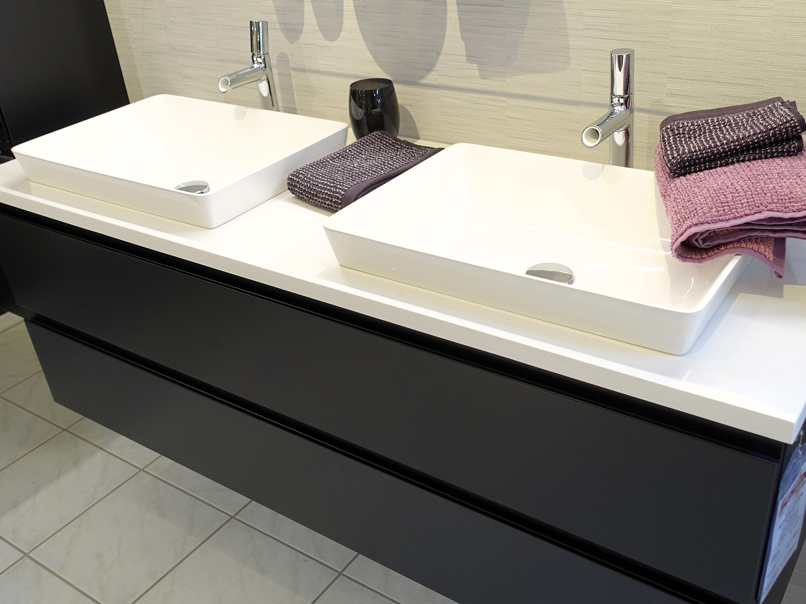 Mit 2 eingesetzten Aufsatzwaschtischen