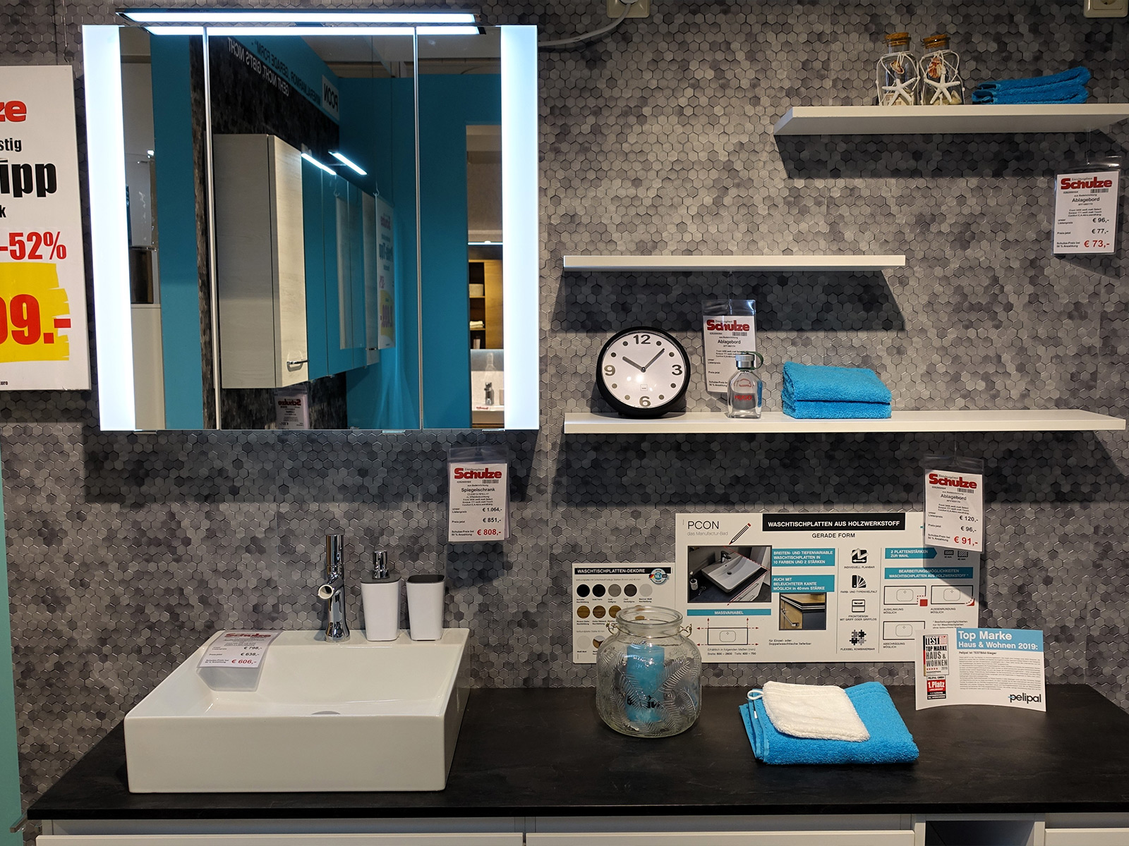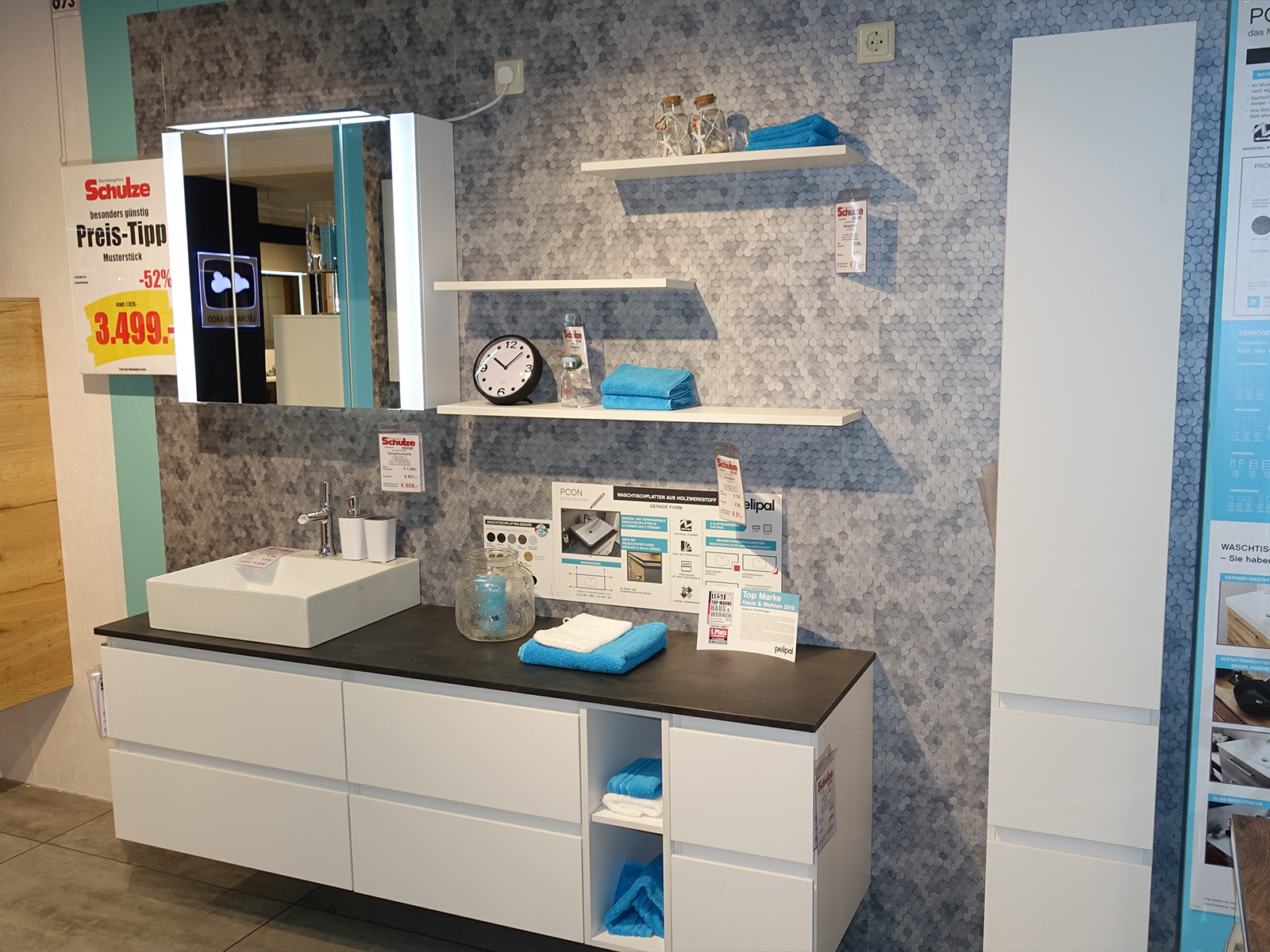 Dieser Artikel ist ein Ausstellungstück im Einrichtungshaus Schulze in Rödental und kann nur dort erworben werden. Lieferung und Montage sind gegen Aufpreis möglich. BITTE BEACHTEN SIE: Zwischenverkauf ist jederzeit möglich. Abholpreis ohne Deko. Alle Maße sind Circa-Angaben. Modell- und Farbabweichungen, Irrtürmer und Liefermöglichkeiten vorbehalten. Für Tippfehler keine Haftung. Abholpreis ohne Armaturen & Dekoration. Zwischenverkauf vorbehalten! Lieferung & Montage können vereinbart werden.