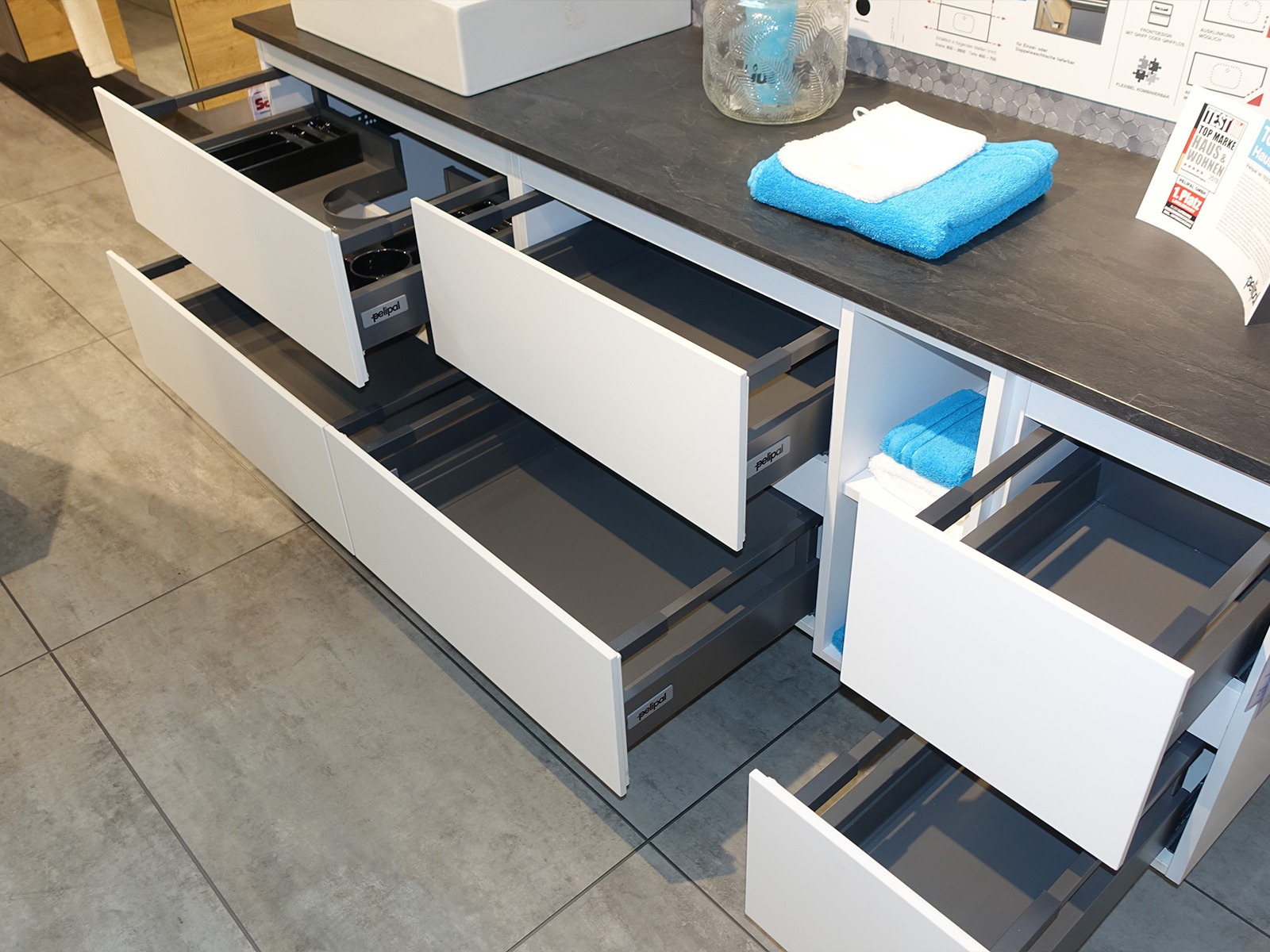 Unterschrank-Kombination, 6 x Auszug, 1 x Regal, ca. 191 cm breit (inkl. Handtuchhalter)