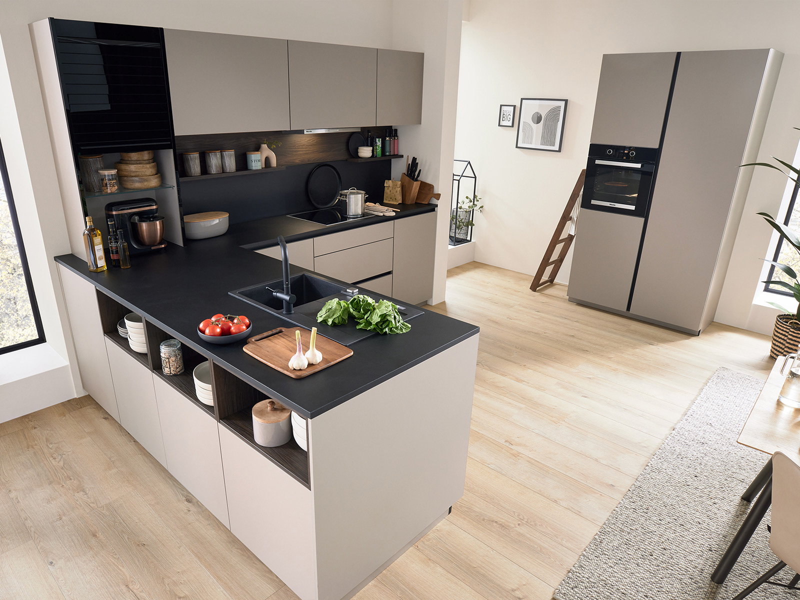 Eine Wohnküche vereint gemeinsames Leben und Kochen. Klare Linien, edle und doch strapazierfähige Oberflächen und innovative Technik schaffen eine zeitgemäße Atmosphäre. Ein offener Grundriss fördert die Kommunikation mit Familie und Gästen, eine geschickte Planung und ein durchdachtes Design machen den Alltag leicht. Mit dieser Küche zieht Freude ein.