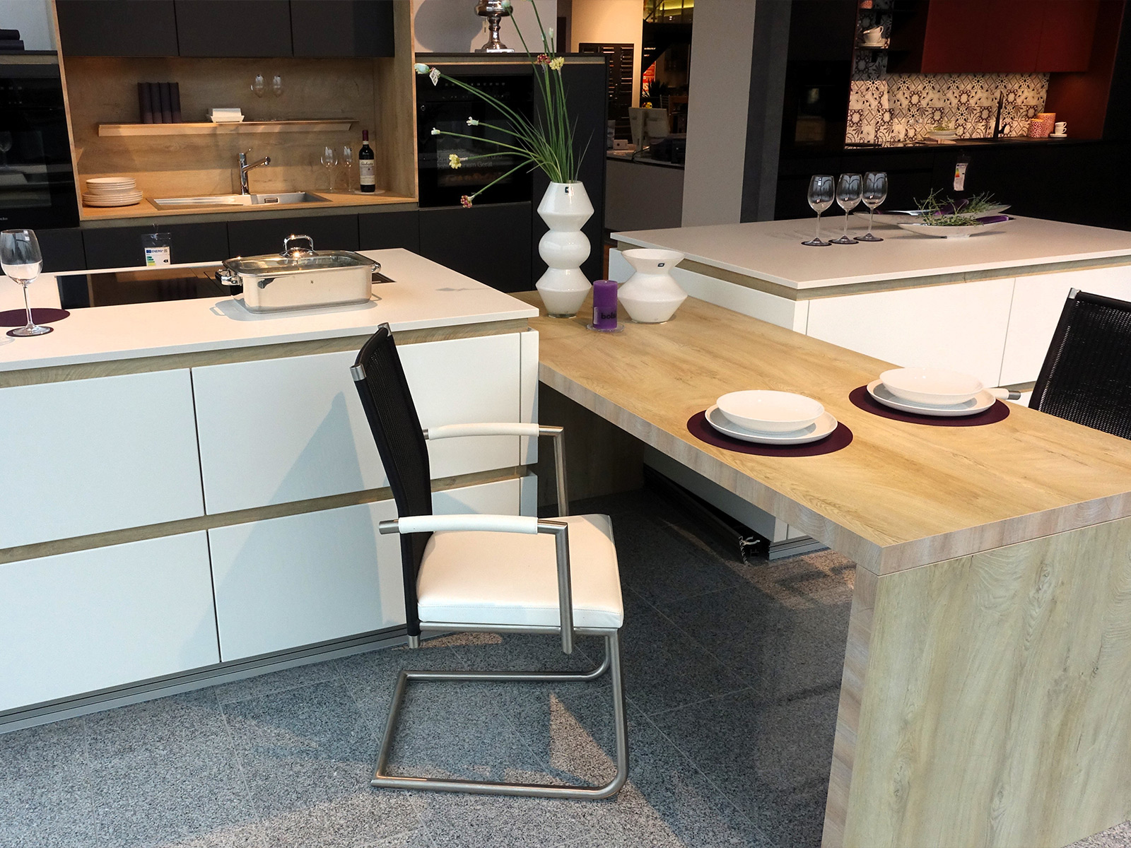 • Mit Doppel-Insel & mittigem Ansetztisch