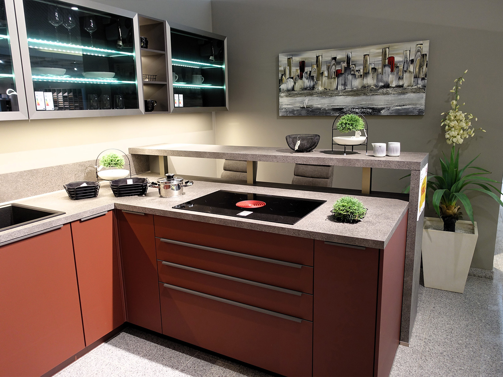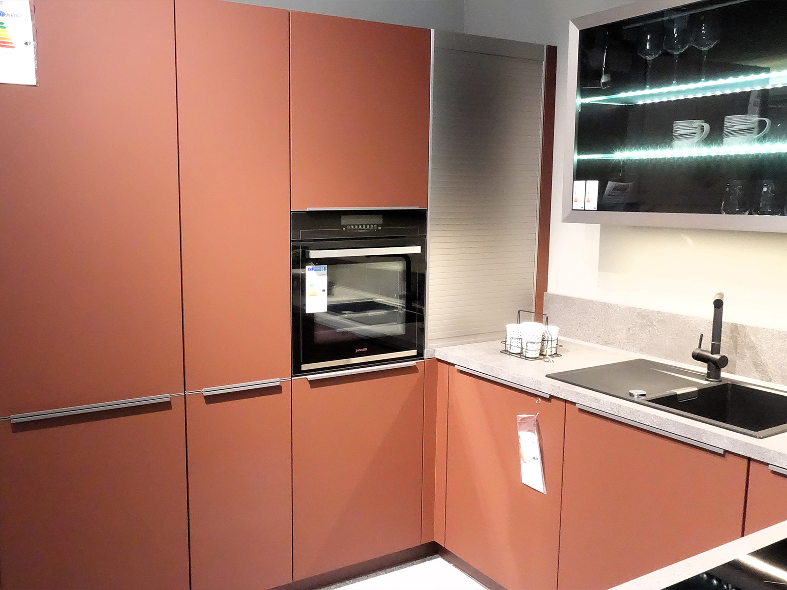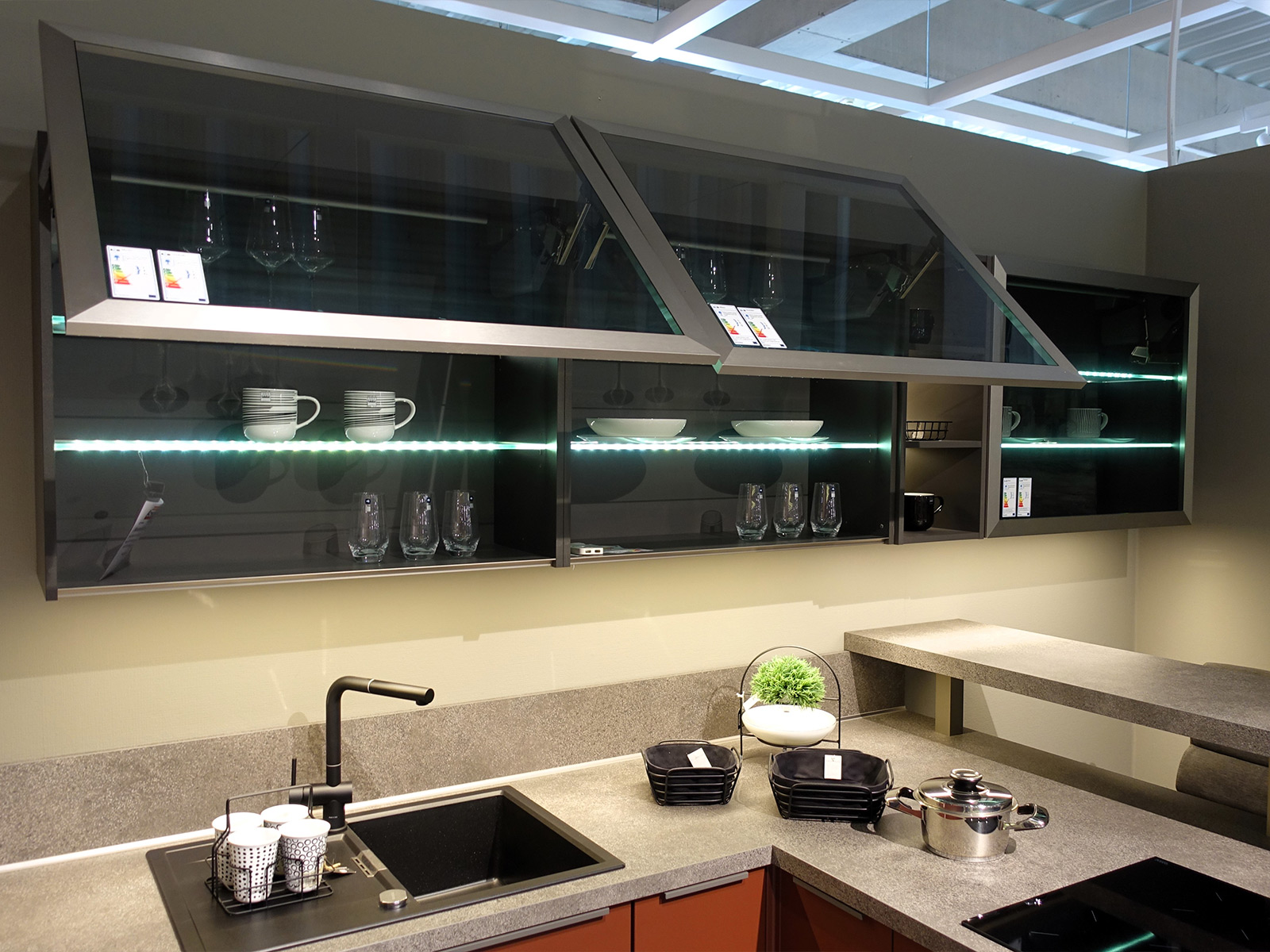 Diese Küche ist eine Ausstellungsküche in der Küchen Arena in Rödental und kann nur dort erworben werden. Abholpreis. Lieferung und Montage sind gegen Aufpreis möglich. GRATIS ZASTER-LASTER bei eigener Abholung. BITTE BEACHTEN SIE: Zwischenverkauf ist jederzeit möglich. Abholpreis ohne Deko. Alle Maße sind Circa-Angaben. Modell- und Farbabweichungen, Irrtürmer und Liefermöglichkeiten vorbehalten. Für Tippfehler keine Haftung.
