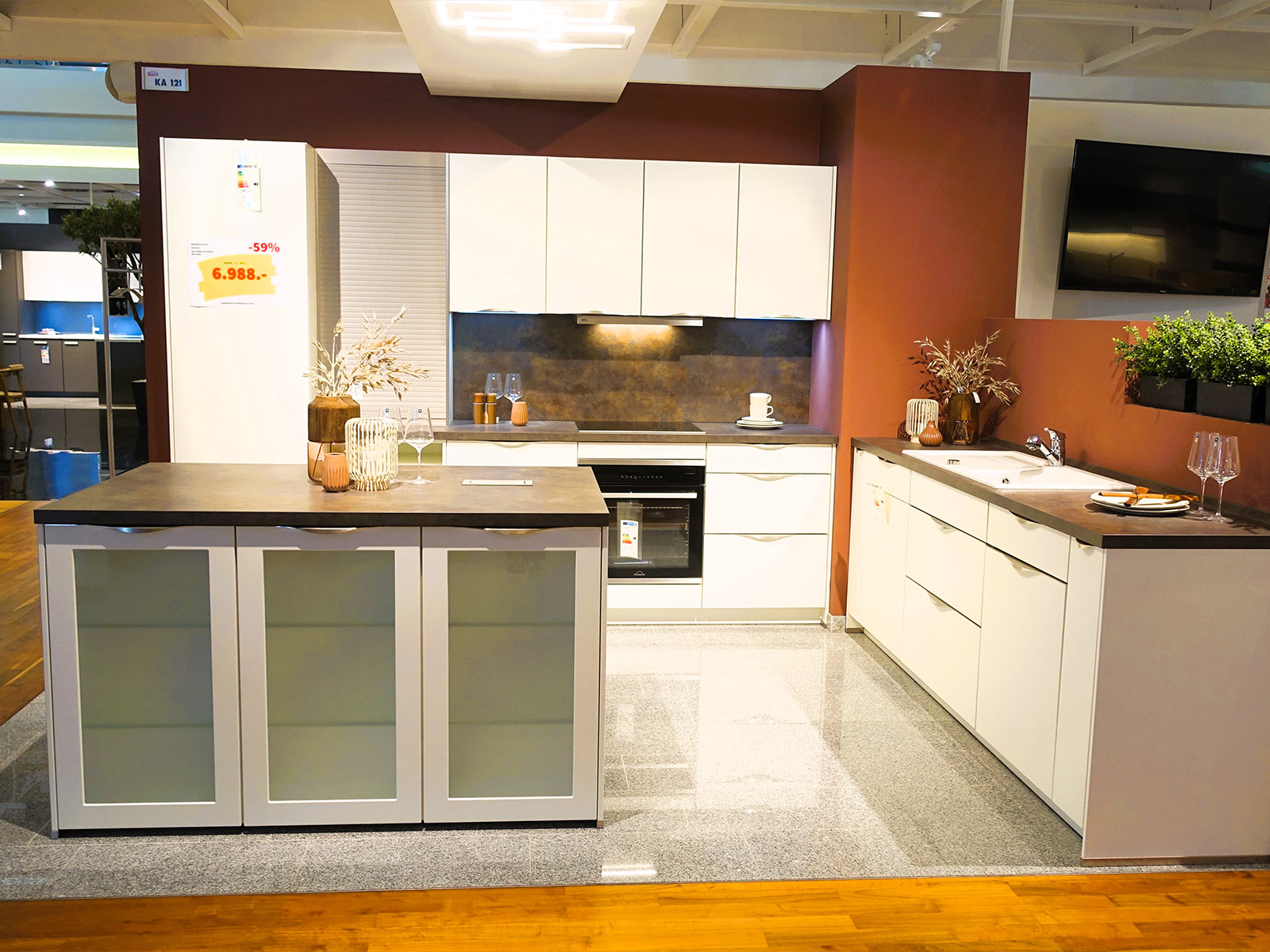 Diese Küche ist eine Ausstellungsküche in der Küchen Arena in Rödental und kann nur dort erworben werden. Abholpreis. Lieferung und Montage sind gegen Aufpreis möglich. GRATIS ZASTER-LASTER bei eigener Abholung. BITTE BEACHTEN SIE: Zwischenverkauf ist jederzeit möglich. Abholpreis ohne Deko. Alle Maße sind Circa-Angaben. Modell- und Farbabweichungen, Irrtürmer und Liefermöglichkeiten vorbehalten. Für Tippfehler keine Haftung. Abholpreis OHNE Dekoration.