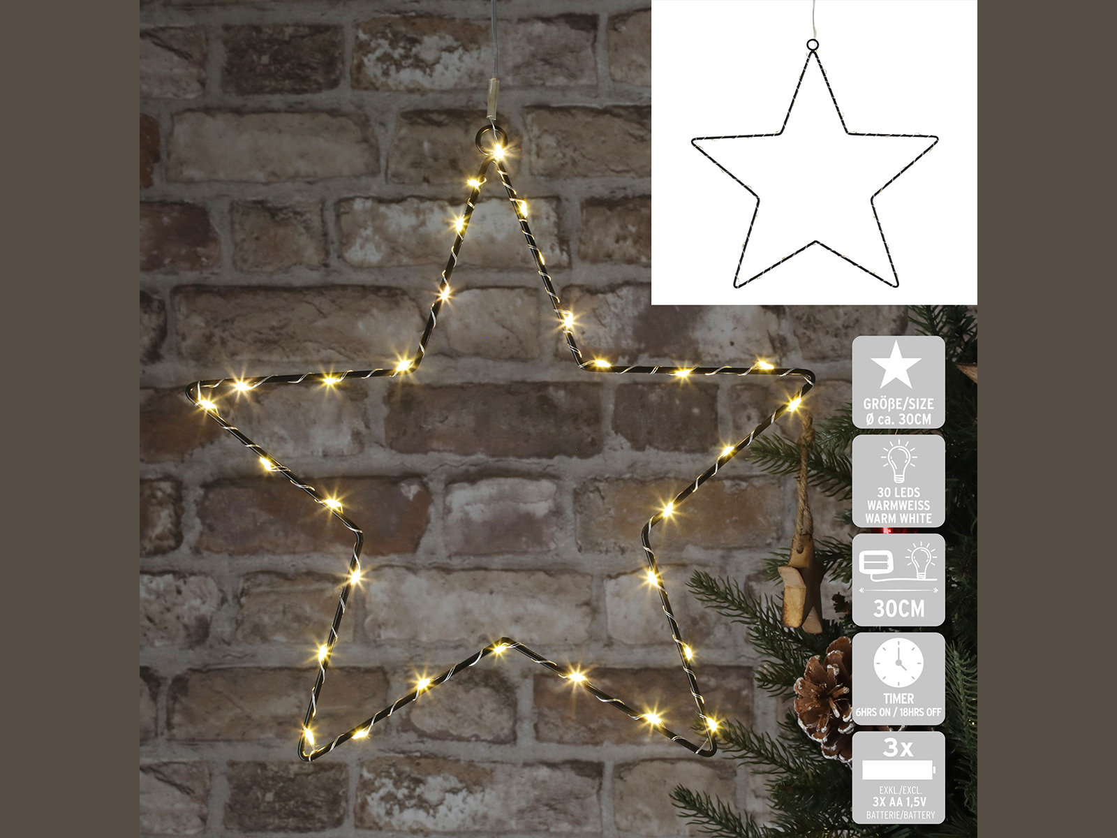 Mehr Lichterketten, Sterne, Baumbeleuchtungen finden Sie auf unserem Weihnachtsmarkt.