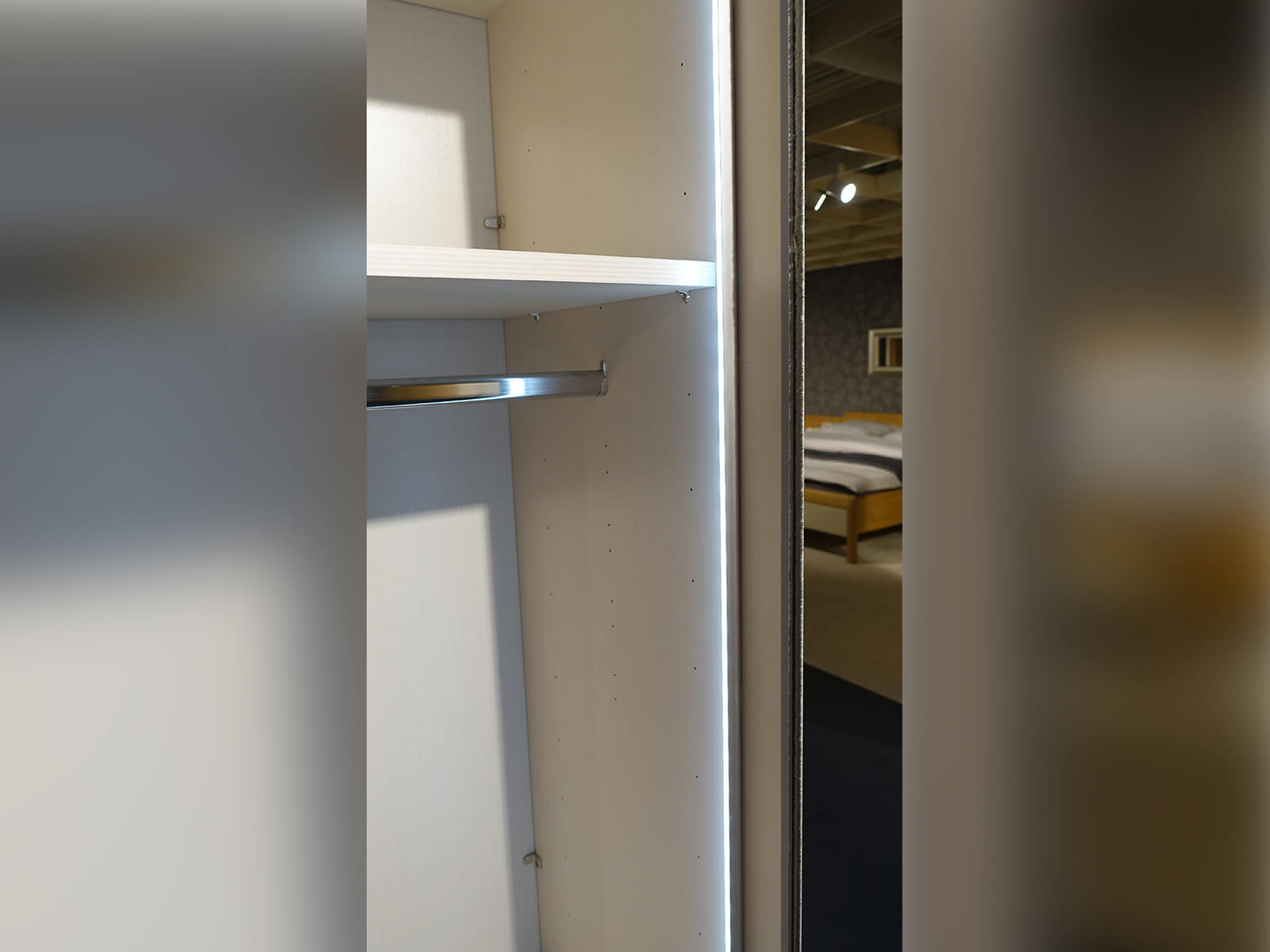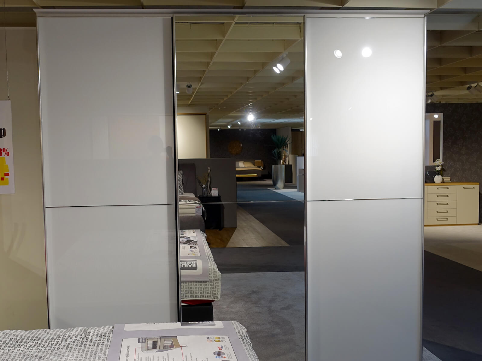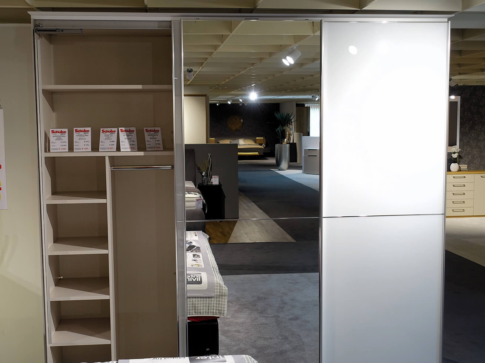 Ausführung: Front Weißglas mit Chromsprosse / Mittig: Spiegel