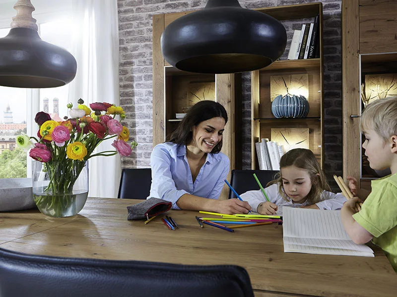 • Action: Als Treffpunkt für die gemeinsame Zeit mit Familie und Freunden muss ein Wohn- und Speisezimmer über eine gute Atmosphäre und Funktionalität verfügen, das jedem Trubel und jeder Action locker Stand hält.